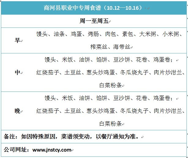 商河職業(yè)中專周食譜